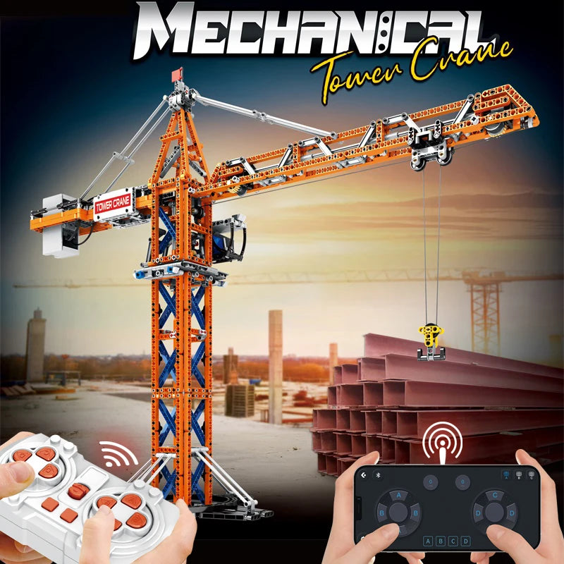 Ferngesteuerter Turmdrehkran als Bausteinspielzeug