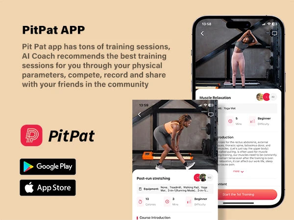 Stellen Sie eine Verbindung zu unserer PitPat-Anwendung her, um Ihre Trainingsdaten zu überwachen.Bieten Sie die Simulation von Outdoor-Sportszenen, verschiedene Kurse und professionelle Trainer für künstliche Intelligenz