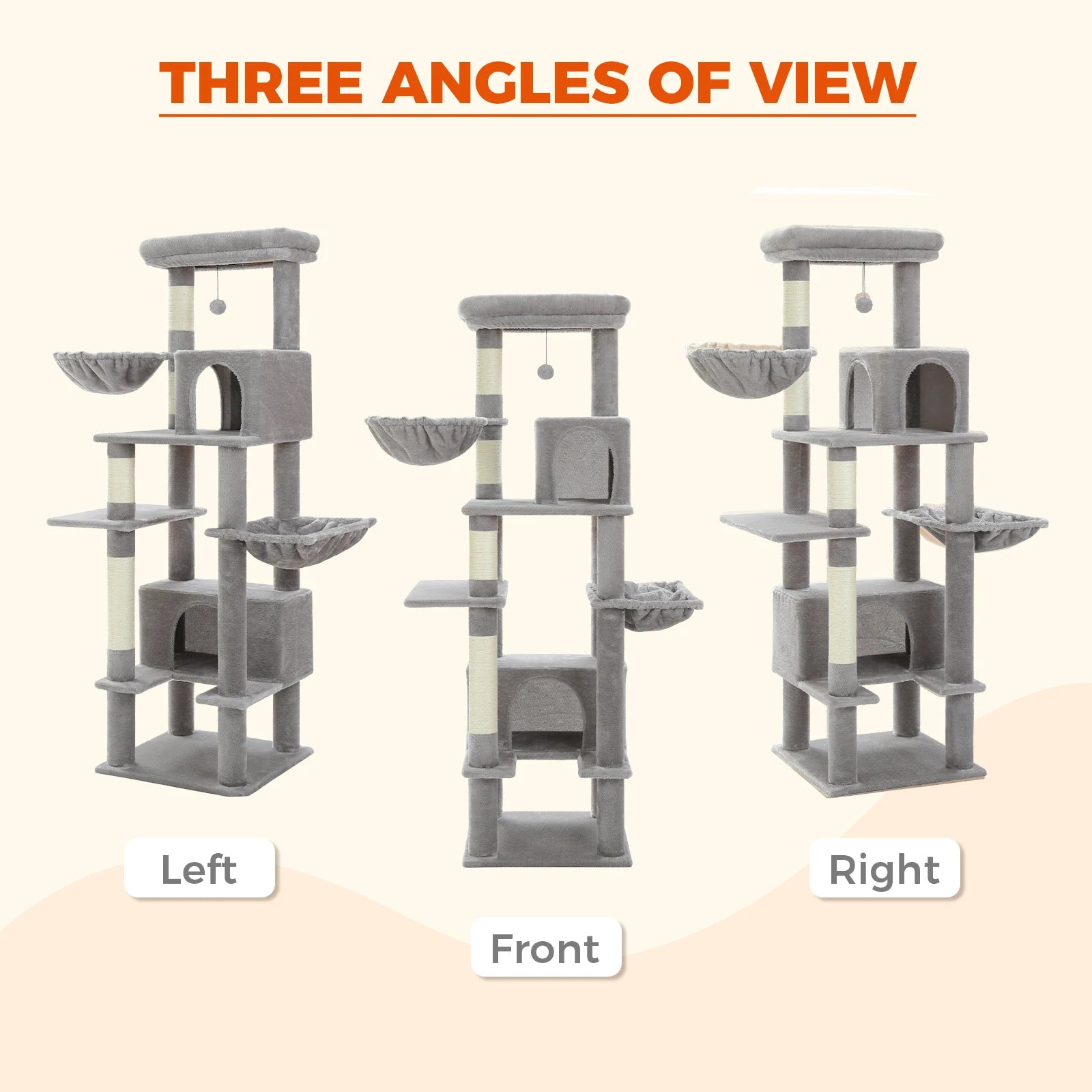 • Lustiges Katzenspielhaus : Dieser mehrstufige Kratzbaum bietet verschiedene Ruheplätze und zusätzliche Unterhaltungsmöglichkeiten. Ihre Katzen können in der Katzenwohnung oder in der Hängematte auf unterschiedlicher Höhe schlafen, auf dem 100 % natürlichen Sisalpfosten zerkratzen oder nach oben und unten springen, um den Toyball zu spielen. Mit diesem wunderbaren Katzenspielhaus fühlen Sie sich Katzenfreunde im Paradies!