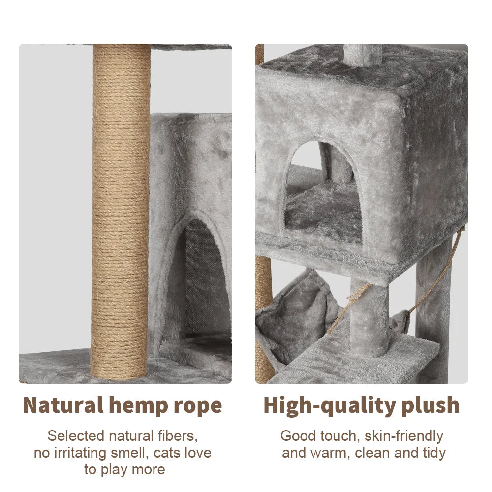 Stabilität ist das wichtigste Kriterium bei einem Katzenturm: Ein stabiler Katzenkletterrahmen, mit Sisal umwickelte Kratzbäume und Kippschutzvorrichtungen sorgen für die Sicherheit aktiver Kätzchen und Katzen, die im Aktivitätszentrum spielen.