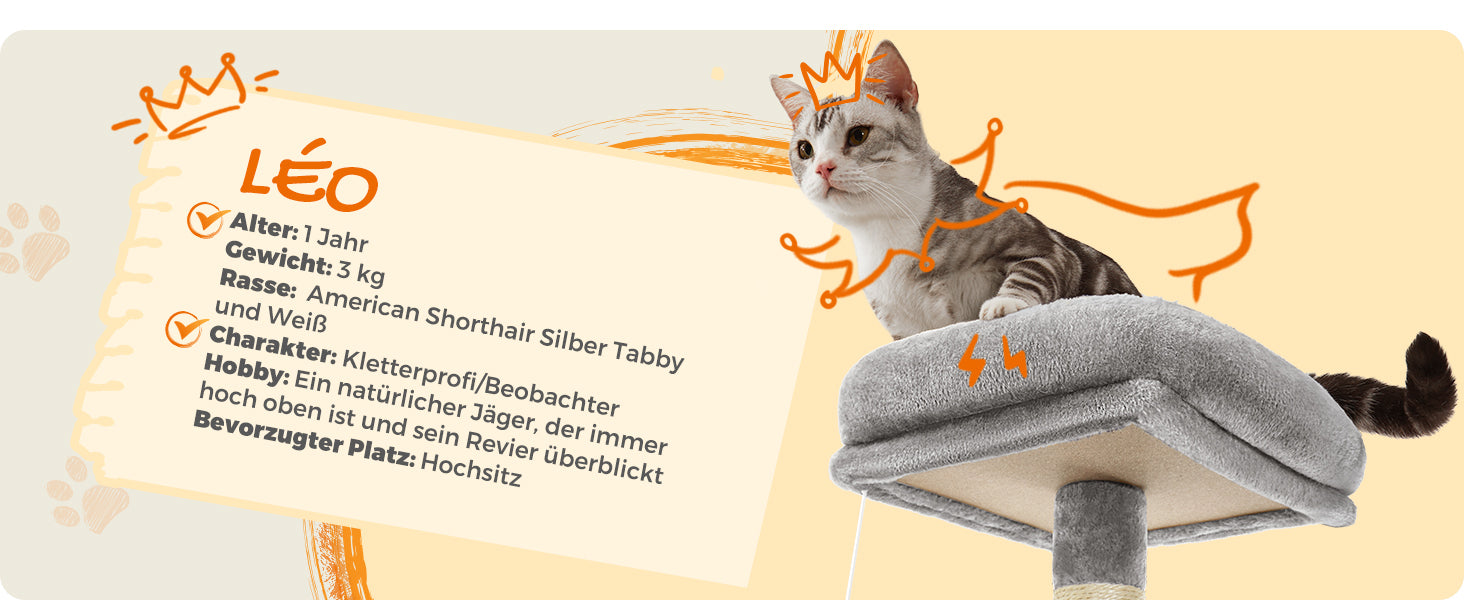 Da Katzen gerne springen und spielen, befestigen Sie den Kratzbaum bitte mit dem mitgelieferten Kippschutz an der Wand, um die nötige Stabilität zu gewährleisten.